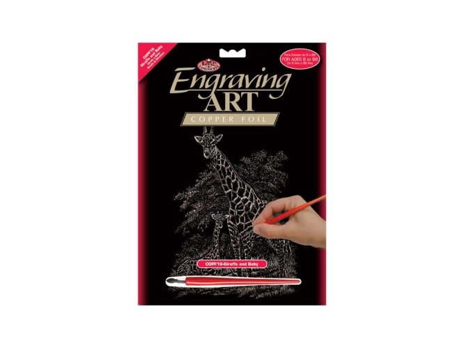 Sada obsahuje obrázek natištěný na černém kartonu, škrabací pero a vzorek na vyzkoušení. Po seškrábání linek předtištěného obrázku se Vám objeví krásný rytinový obrázek, který se pěkně leskne z různých úhlů pohledu. Vhodné od 8 let.