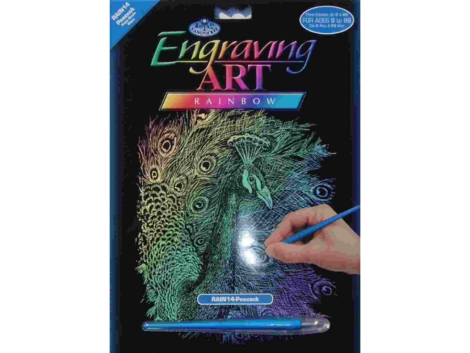 Sada obsahuje obrázek natištěný na černém kartonu, škrabací pero a vzorek na vyzkoušení. Po seškrábání linek předtištěného obrázku se Vám objeví krásný rytinový obrázek, který se pěkně leskne z různých úhlů pohledu. Vhodné od 8 let.