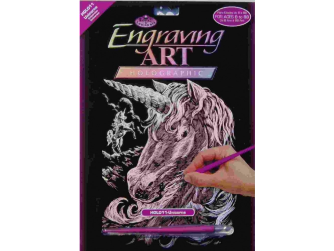 Sada obsahuje obrázek natištěný na černém kartonu, škrabací pero a vzorek na vyzkoušení. Po seškrábání linek předtištěného obrázku se Vám objeví krásný rytinový obrázek, který se pěkně leskne z různých úhlů pohledu. Vhodné od 8 let.