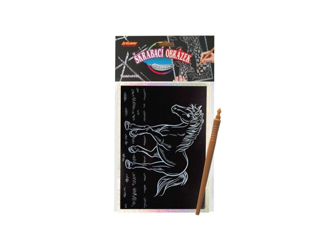 Škrabací obrázek- Holografický 20x15 cm- koník