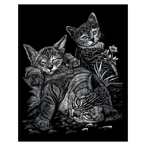 Obsahuje: obrázek natištěný na černém kartonu, škrabací pero a vzorek na vyzkoušení.