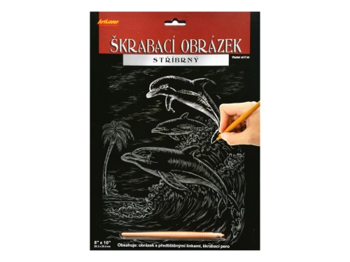 Škrabací obrázek stříbrný 20 x 25 cm Sada obsahuje obrázek natištěný na černém kartonu a umělohmotné škrabací pero. Seškrabte linky předtištěného obrázku. Vhodné pro děti od 6 let.