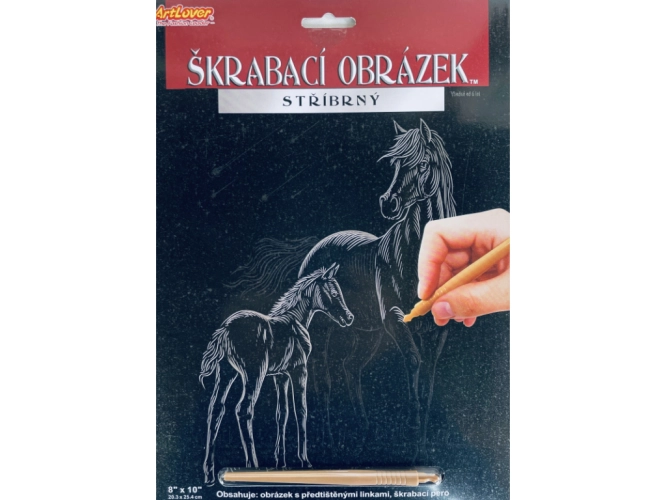 Škrabací obrázek stříbrný 20x25cm - Kůň a hříbě