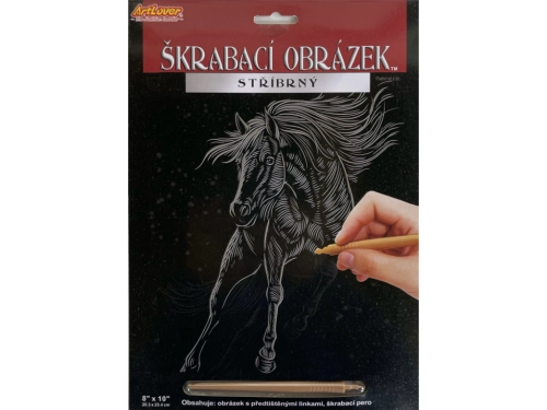 Škrabací obrázek stříbrný 20x25cm - Kůň
