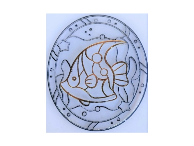 Možno zavěsit i postavit.Nejlépe vynikne na světlých místech- parapety, okna. Vhodné i pro velmi malé děti, protože jednotlivá políčka jsou ohraničena vystouplou konturou. Kontura je zlato-černá. Součástí balení je i gelová přísavka včetně zlaté šňůrky. Velikost vitráže 16x13,5cm.