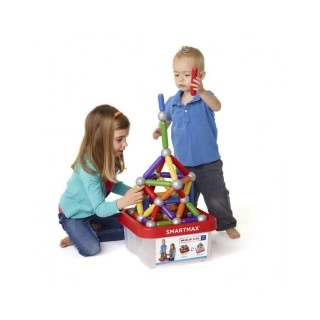 SmartMax kontejner 70 ks je ideální pro stavění krásných velkých staveb. Velké magnetické díly jsou vhodné pro malé děti od 1 roku. Stavebnice je uložená v pěkném a praktickém kontejneru. Červené víko i dno kontejneru slouží zároveň i jako stavební základna. Ideální pro školky, dětské skupiny nebo hrací koutky. SmartMax Kontejner 70 obsahuje 38 kratších mg. tyček, 12 dlouhých mg. tyček a 20 koulí. Velikost kontejneru je 35x35x18 cm. Všechny stavebnice SmartMax lze vzájemně kombinovat.