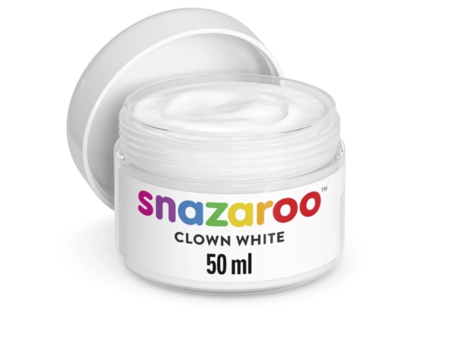 Netoxická bílá obličejová barva, kterou nanášíte navlhčenou houbičkou nebo štětcem přímo z dózy. Do barvy není nutné přidávat vodu.
