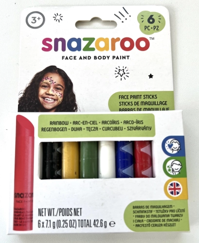Dokonalé balení 6 jednoduchých pastelových tyčinek na obličej. Díky zkosené špičce pro snadnou aplikaci jsou ideální pro malé prsty. Připraveno k použití od okamžiku, kdy otevřete balení bez potřeby vody, jednoduše odlepte plastový obal a buďte kreativní! Stejně jako všechny barvy SNAZAROO jsou snadno odstranitelné (stačí omýt mýdlem), hypoalergenní a netoxické.