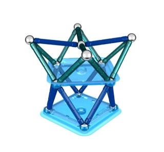 Stavební podložka ve tvaru čtverce (modrá nebo oranžová) je vhodný doplněk ke stavebnicím Geomag řady KIDS s dlouhými magnetickými tyčkami.