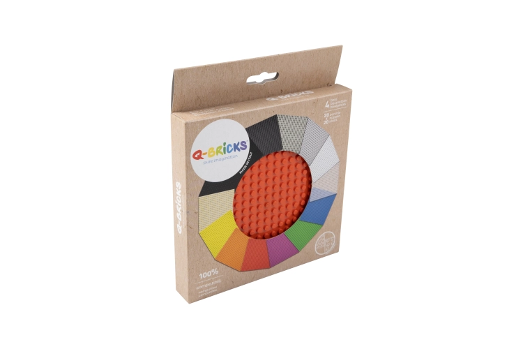 Oboustranná stavební podložka Q-Bricks oranžové barvy. Velikost 20x20 výstupků, 16x16 cm. Podložku lze využít z obou stran - jako základnu i jako stříšku.