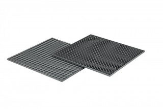 Oboustranná stavební podložka Q-Bricks tmavě šedé barvy. Velikost 20x20 výstupků, 16x16 cm.