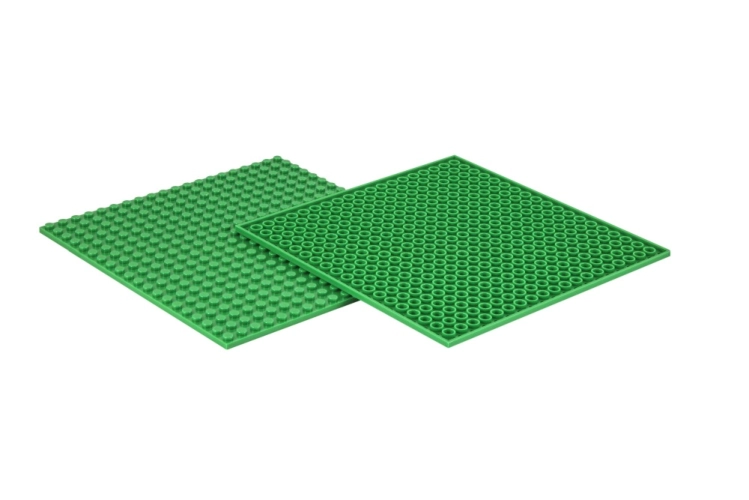 Oboustranná stavební podložka Q-Bricks zelené barvy. Velikost 20x20 výstupků, 16x16 cm.