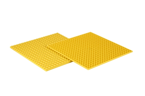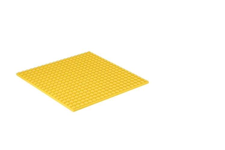 Oboustranná stavební podložka Q-Bricks žluté barvy. Velikost 20x20 výstupků, 16x16 cm. Podložku lze využít z obou stran - jako základnu i jako stříšku.