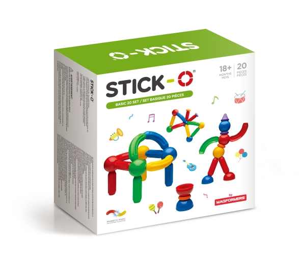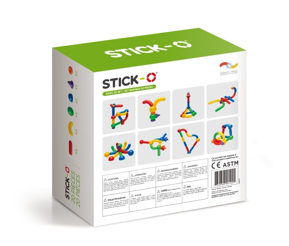 Dílky oplývají sytými barvami a hlavní důraz je kladen na jejich bezpečnost. Stavebnice je použitelná prakticky bez věkového omezení a díky překvapivé variabilitě si s ní často rádi hrají i starší sourozenci a rodiče. Dílky z této sady lze libovolně kombinovat se všemi ostatními stavebnicemi série Stick-O.