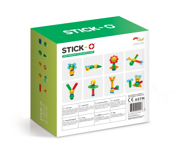 Dílky oplývají sytými barvami a hlavní důraz je kladen na jejich bezpečnost. Stavebnice je použitelná prakticky bez věkového omezení a díky překvapivé variabilitě si s ní často rádi hrají i starší sourozenci a rodiče. Dílky z této sady lze libovolně kombinovat se všemi ostatními stavebnicemi série Stick-O.