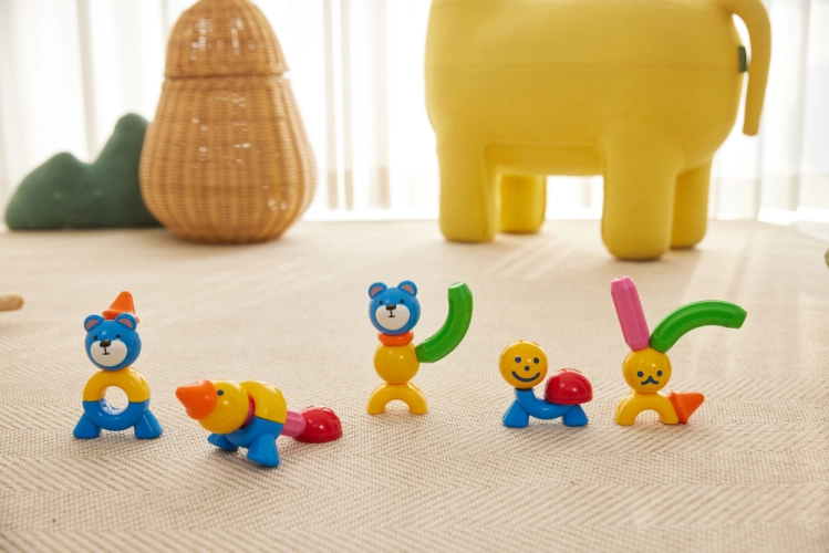 Stavebnice obsahuje 10 velkých plastových dílků s otočnými magnety. Některé z dílků jsou tématicky zaměřené.