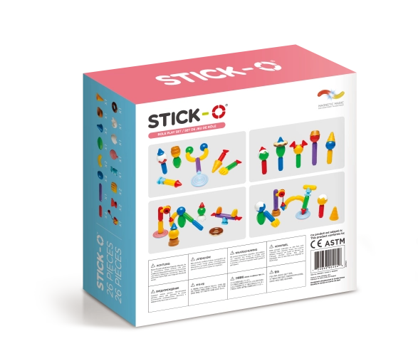 Dílky oplývají sytými barvami a hlavní důraz je kladen na jejich bezpečnost. Stavebnice je použitelná prakticky bez věkového omezení a díky překvapivé variabilitě si s ní často rádi hrají i starší sourozenci a rodiče. Dílky z této sady lze libovolně kombinovat se všemi ostatními stavebnicemi série Stick-O.