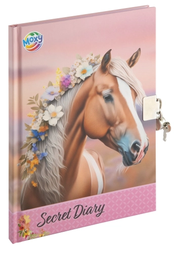 Linkovaný zápisník (růžový podklad) s motivem koně