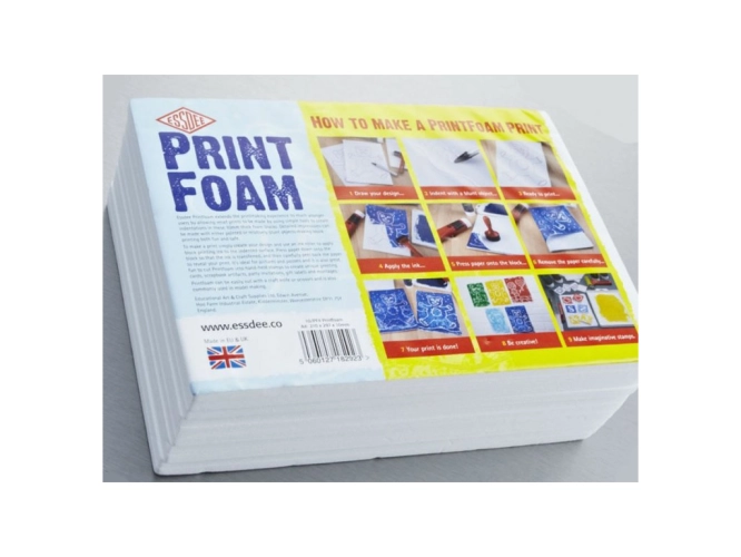 Jak pracovat s tiskařskou pěnou: vytvořte si návrh, který přes průpisný papír překreslete na tiskařskou pěnu. Vytvořený návrh vyryjte tupým předmětem, popřípadě obyčejnou tužkou na tiskařskou pěnu. Na plastovou misku si připravte linorytové barvy (je možné barvy míchat a kombinovat). Předpřipravenou barvu nanášejte gumovým válečkem na tiskařskou pěnu. Na natřenou barvu obtiskněte papír a přitlačte jej. Pomalu odlepte papír od pěny a tisk máte hotový. Vyrobeno v Anglii