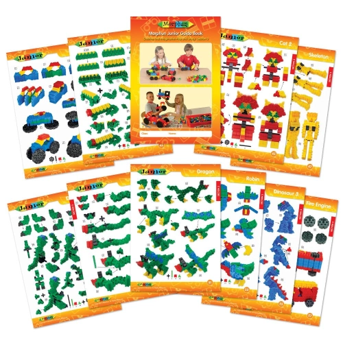 Junior Guide Book obsahuje 60 silných, lakovaných stran A4 v kroužkové vazbě. Na každé stránce je vyobrazená jiná stavba krok za krokem. Kniha obsahuje 3 oddíly po 20 stranách v závislosti na obtížnosti konstrukce.