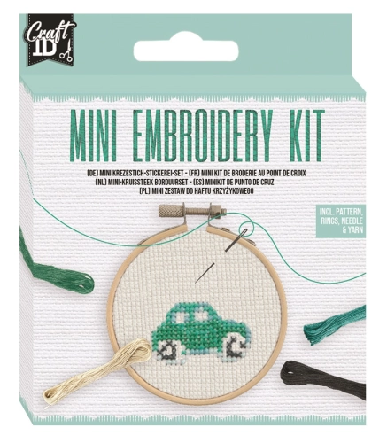 9 bavlnek, vyšívací kruh - bambusový bubínek, vyšívací tkanina - aida 11 x 11 cm, vyšívací jehlu, obrázkový návod + návod jak vyšívat.