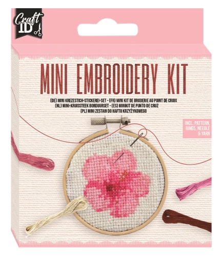 9 bavlnek, vyšívací kruh - bambusový bubínek, vyšívací tkaninu - aida 11 x 11 cm, vyšívací jehlu, obrázkový návod + návod jak vyšívat.