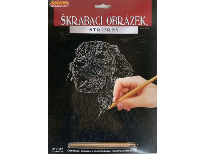 Vyškrabovací obrázek stříbrný 20x25 cm - Pes