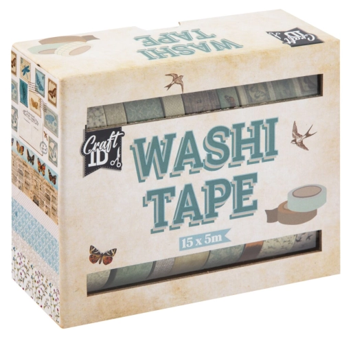 Washi pásky v boxu, 15 ks, 5 m - béžové