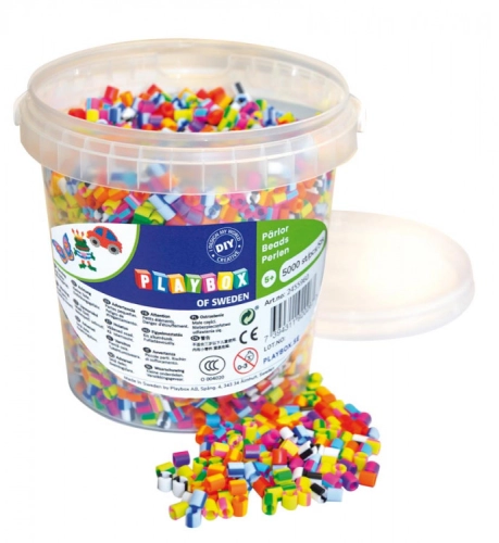 Zažehlovací korálky v praktickém kbelíčku v mixu - pruhovaný mix.