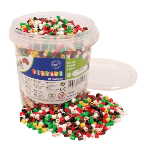 Zažehlovací korálky v praktickém kyblíku (12 x 11 x 12 cm).