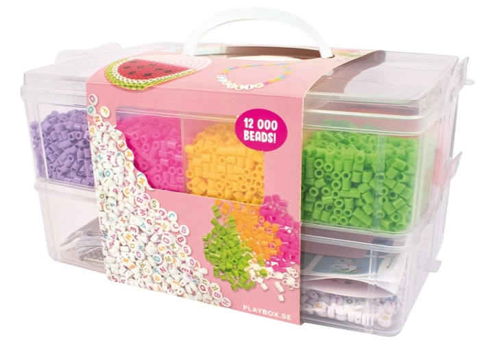 Součástí jsou také podložky na zažehlování, na kterých děti i dospělí mohou podle vlastní fantazie nebo šablon vyskládat libovolné motivy. Kromě toho sada obsahuje písmenkové korálky pro tvorbu jmen, náramků a personalizovaných doplňků.