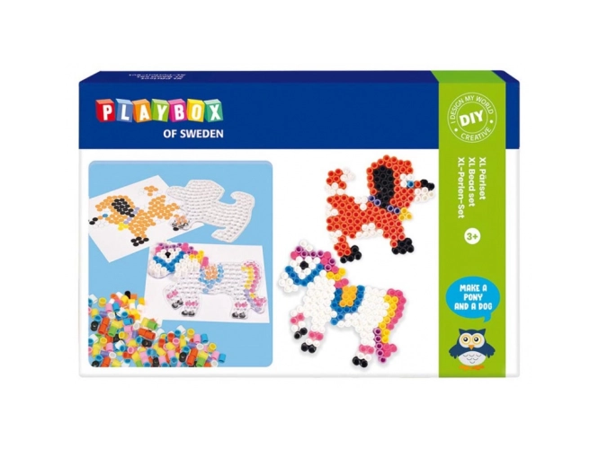 Balení obsahuje 600 ks XL zažehlovacích korálků různý barev1x 0,8cm, 2x podložka - koník a auto, 2x předloha a pečící papír.