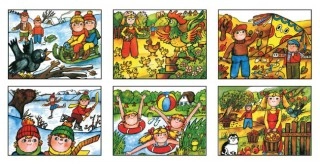 Zuzka je holka jako každá jiná. V zimě jezdí s kámošem na bruslích a sáňkuje, na podzim pouští draka nebo sbírá na zahradě jablíčka a v létě je stále ve vodě. Je to vodní živel, vlastně, Zuzka je živel spíš ve všem. Tam kde není ona, tam se nic neděje a naopak. Balení obsahuje 12 dřevěných kostek (3 x 4 kusy), které jsou uloženy v papírové krabičče. Součástí balení jsou i obrázkové předlohy, které dětem usnadní složení kostek do finální podoby.